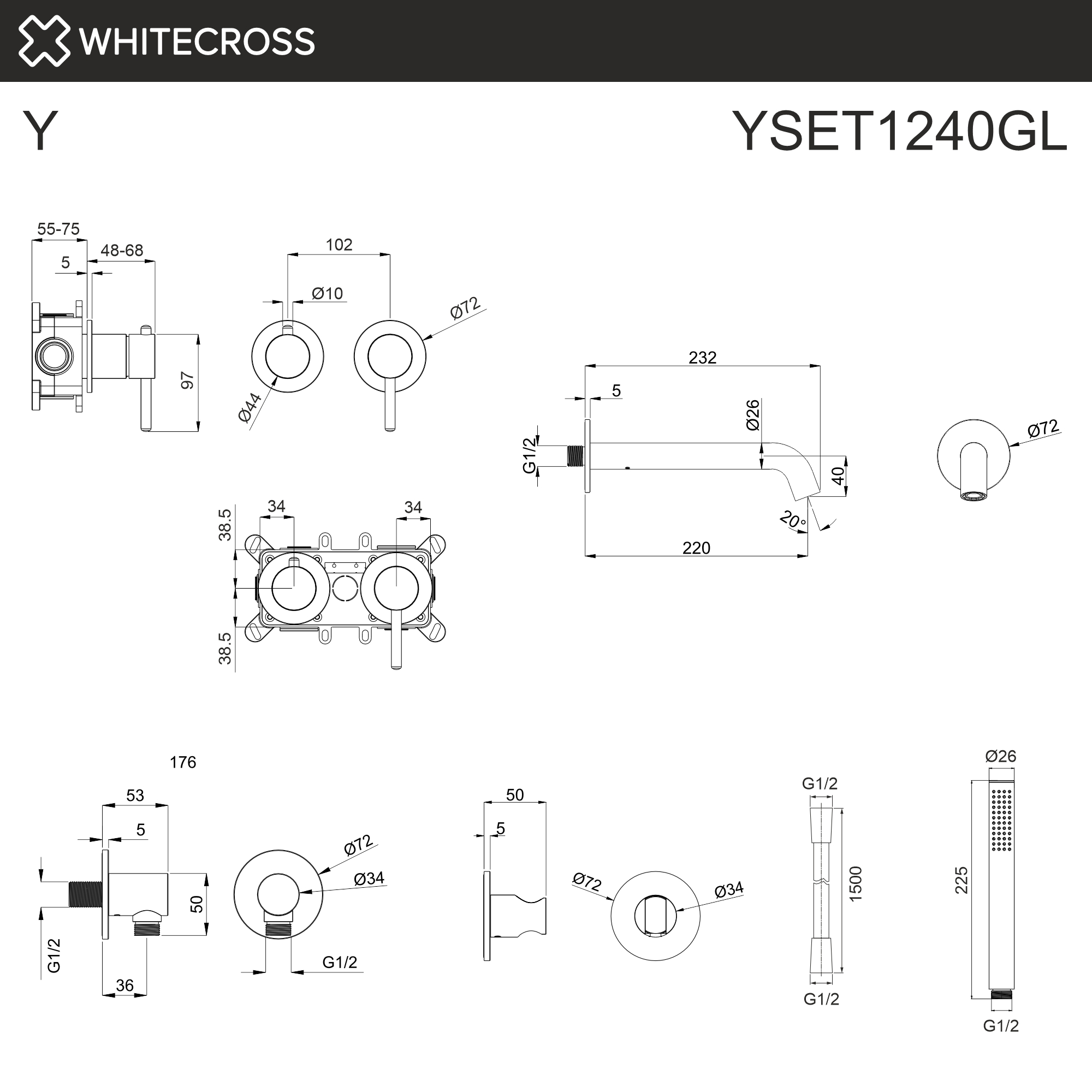Смеситель для ванны скрытого монтажа WHITECROSS Y YSET1240GL (золото)
