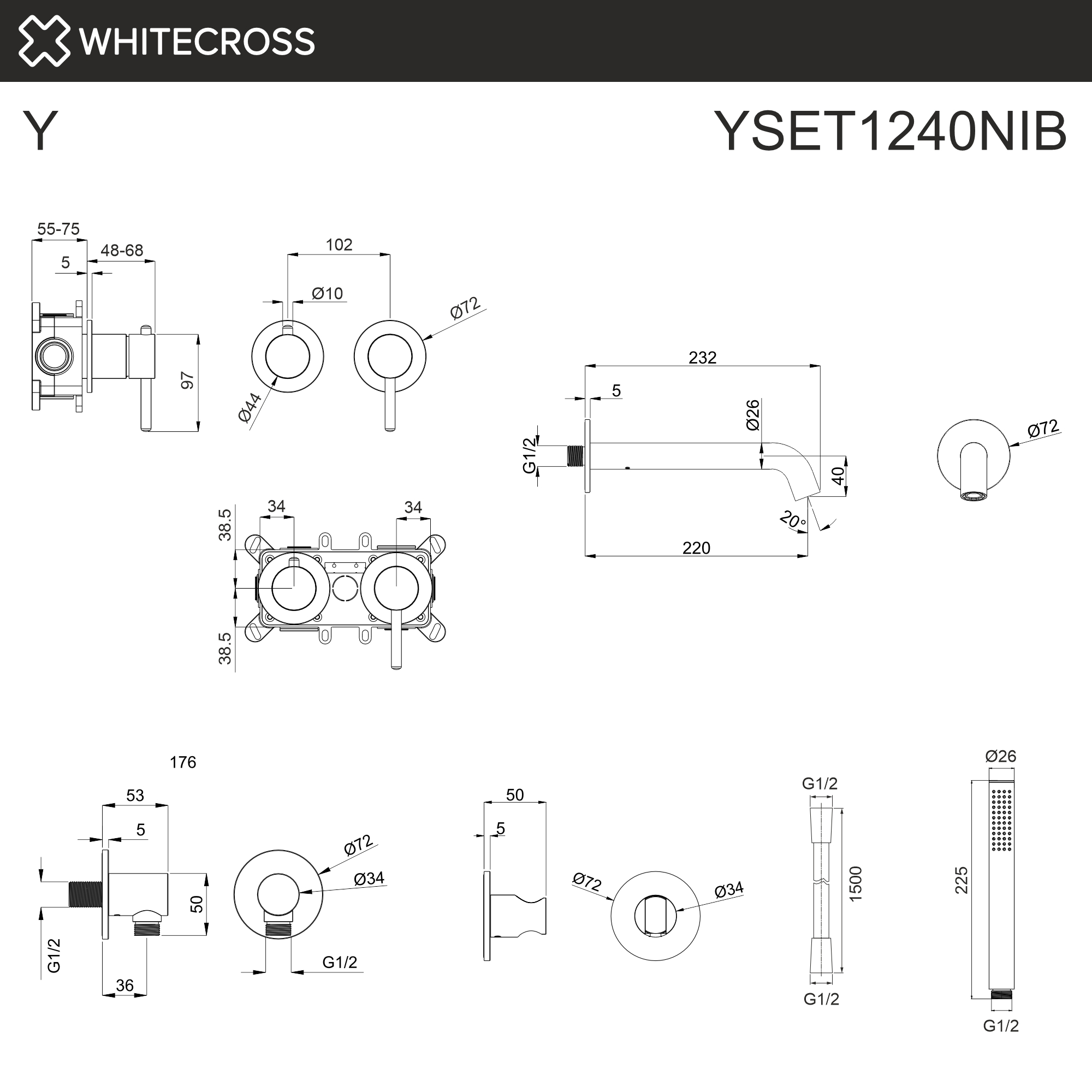 Смеситель для ванны скрытого монтажа WHITECROSS Y YSET1240NIB (брашированный никель)
