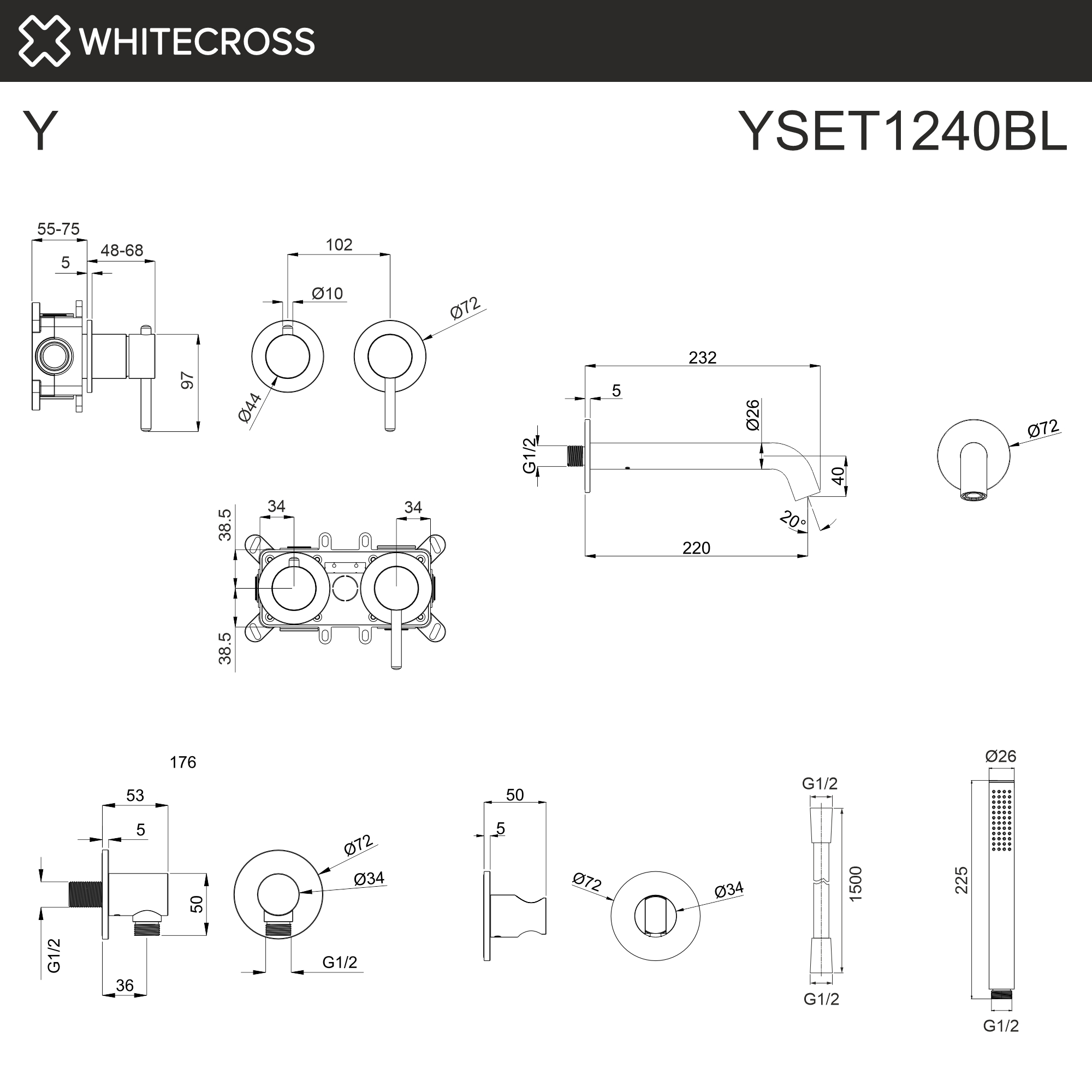Смеситель для ванны скрытого монтажа WHITECROSS Y YSET1240BL (черный мат)