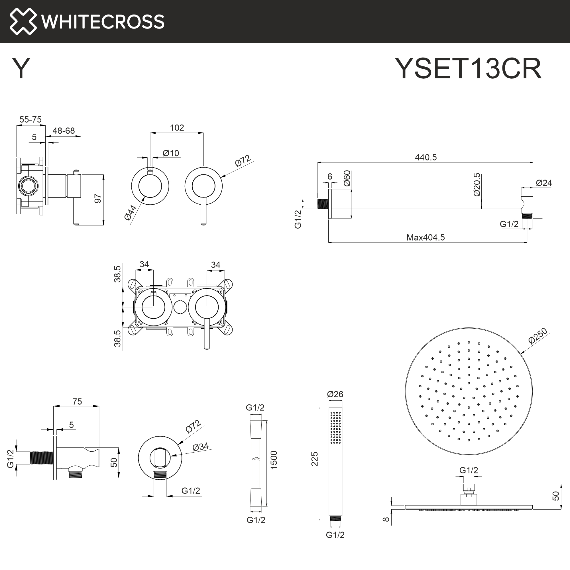 Система для душа скрытого монтажа WHITECROSS Y YSET13CR (хром)