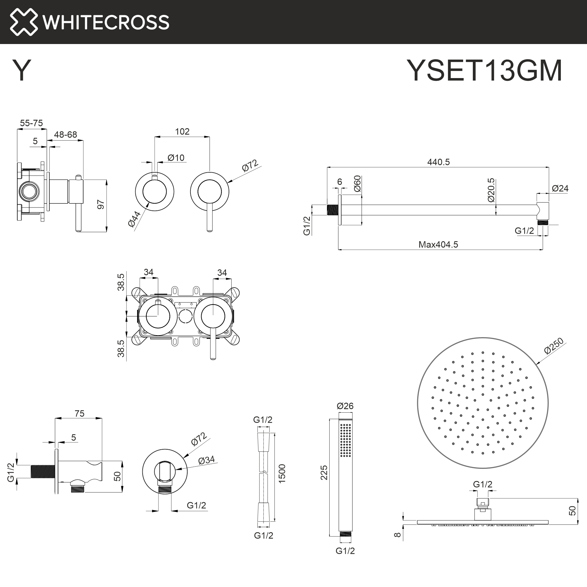 Система для душа скрытого монтажа WHITECROSS Y YSET13GM (оружейная сталь)