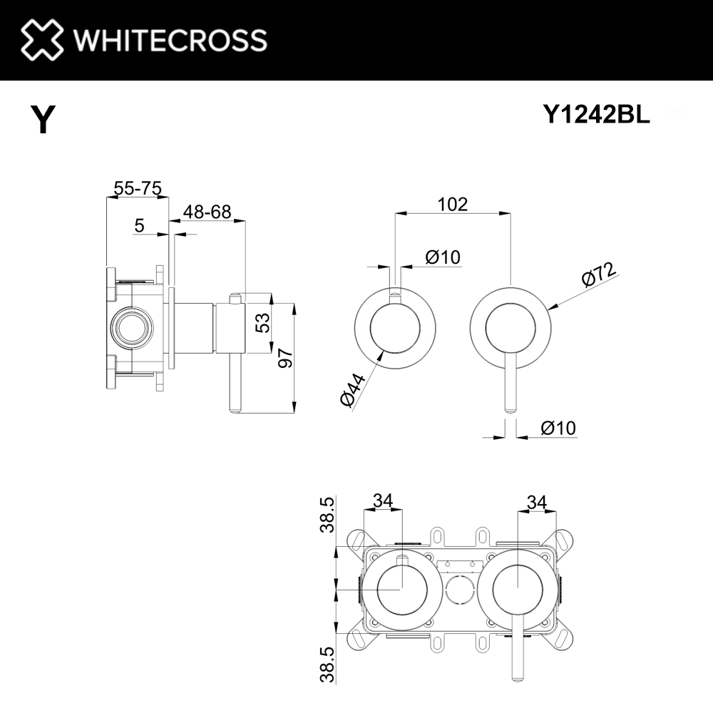 Смеситель скрытого монтажа на 2 потребителя WHITECROSS Y Y1242BL (черный мат)