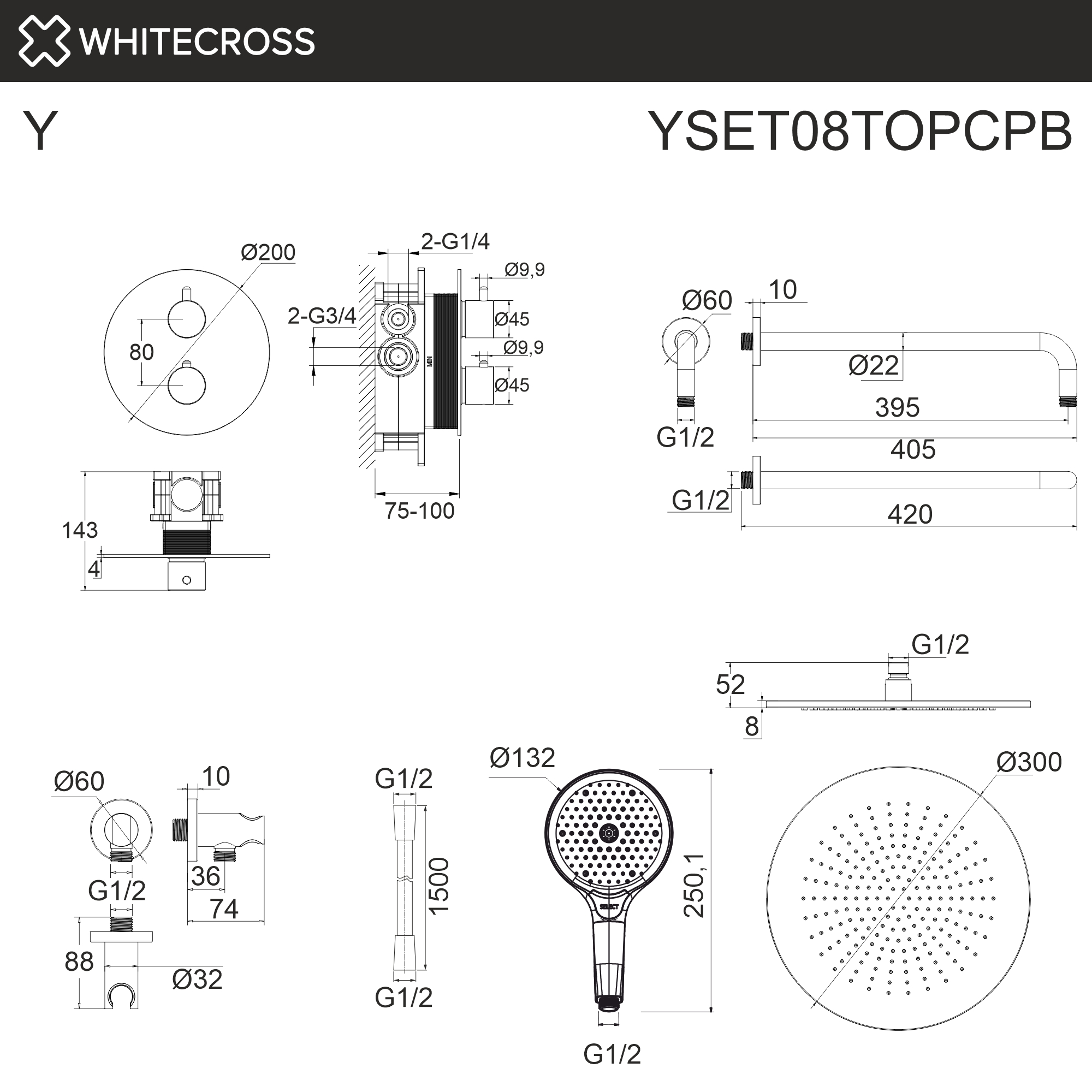 — верхний душ — Y1300CPB;