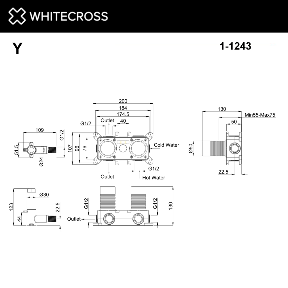Встраиваемая часть смесителя на 3 потребителя WHITECROSS Y1243